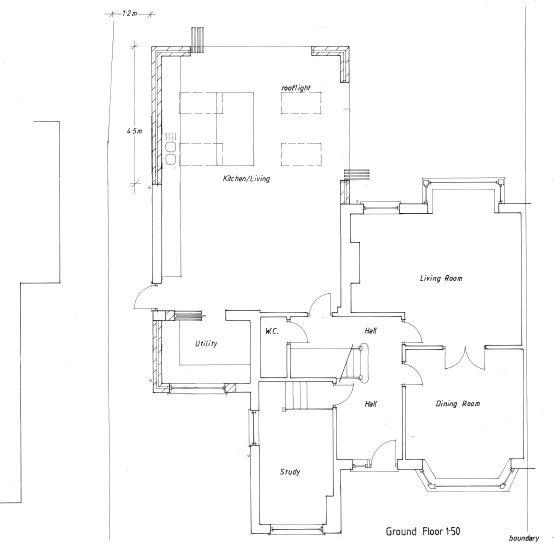 The client had previously gained planning permission for an alternative, but impractical design which stepped the side walls of both the side and rear extensions. The client wished to have a practical living space without the stepped elevations.
