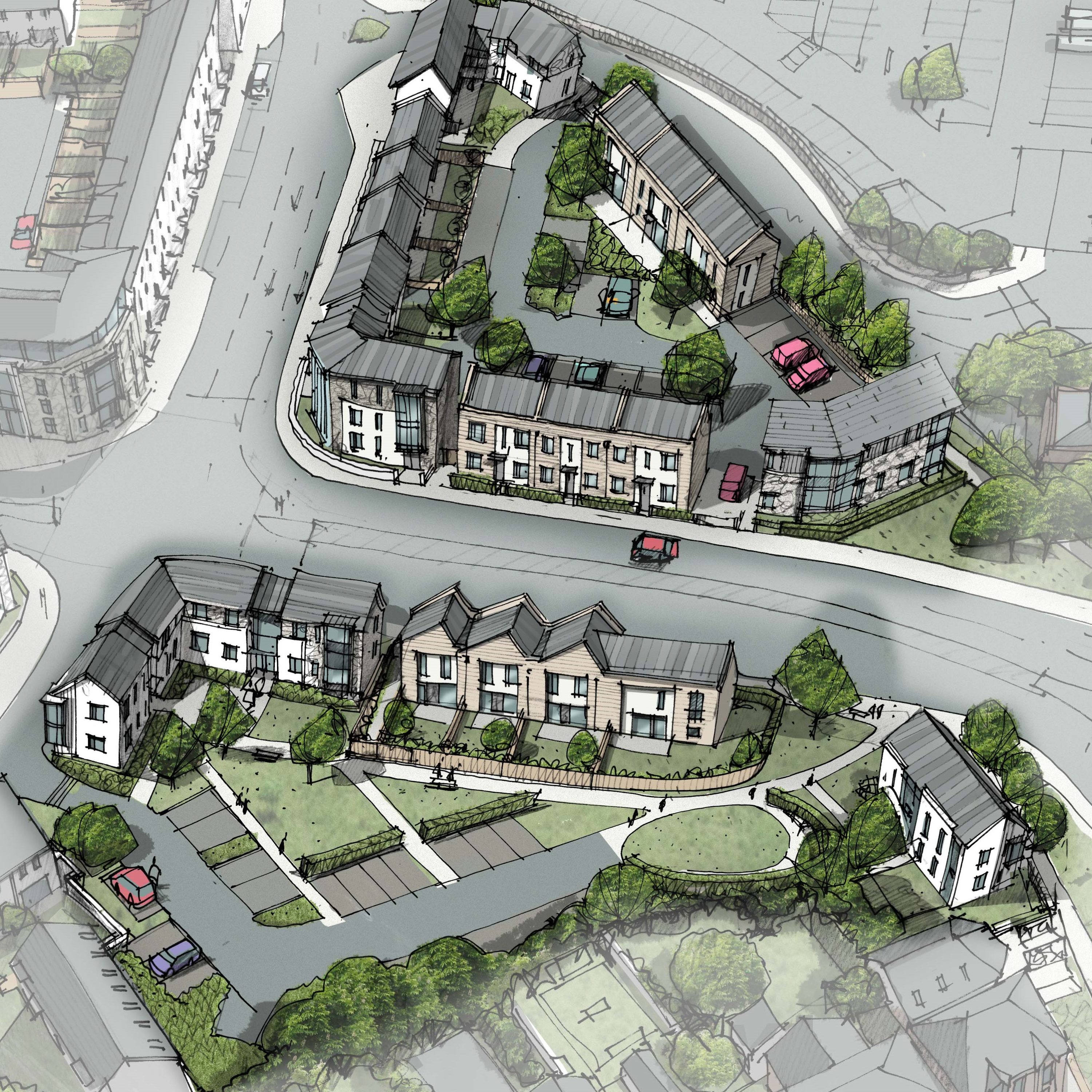 The site has a complex planning history, forming part of a large development area, and has been vacant for over 15 years. Cornwall Council had long term aspirations for commercial uses in this location and planning officers were initially opposed to a residential scheme on the application site. After detailed negotiations, we were able to demonstrate that the applicant had met all marketing obligations and the requirement for community facilities and that the site was unsuitable for other commercial uses, including office and retail uses.
